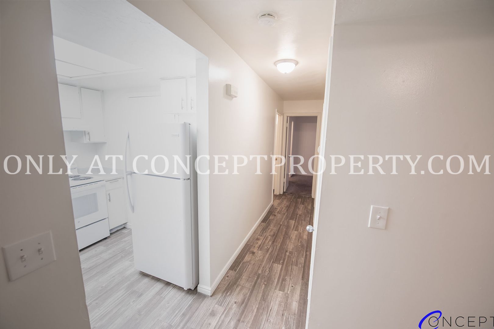 Spacious bottom-floor 3 Bed / 2 Bath with W/D hookups, featuring stylish vinyl flooring with cozy carpet accents.