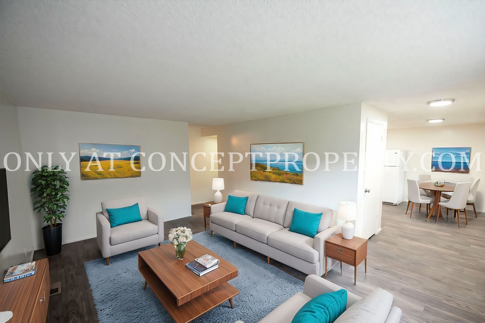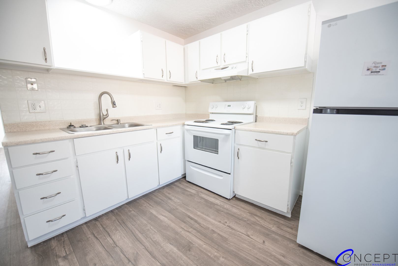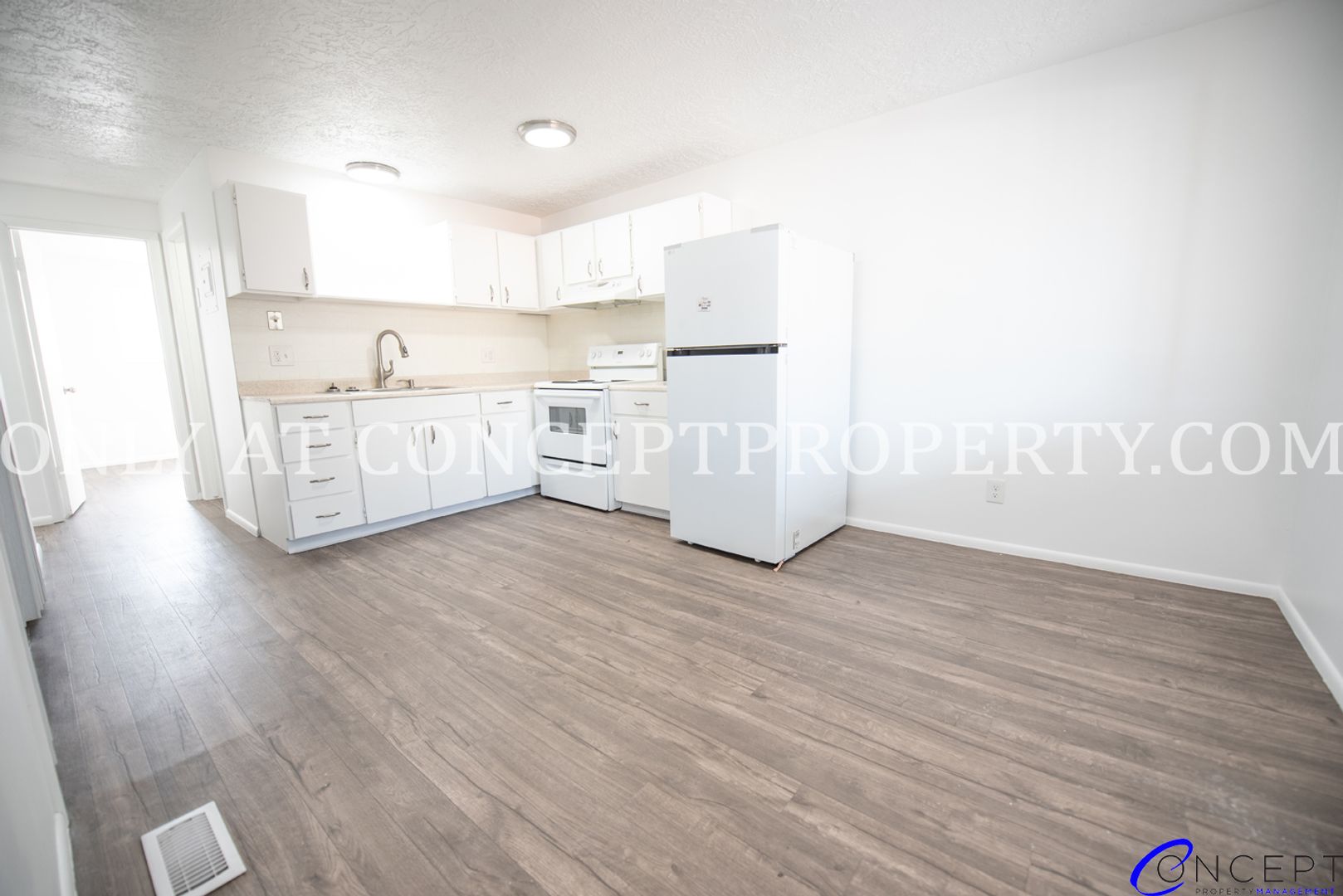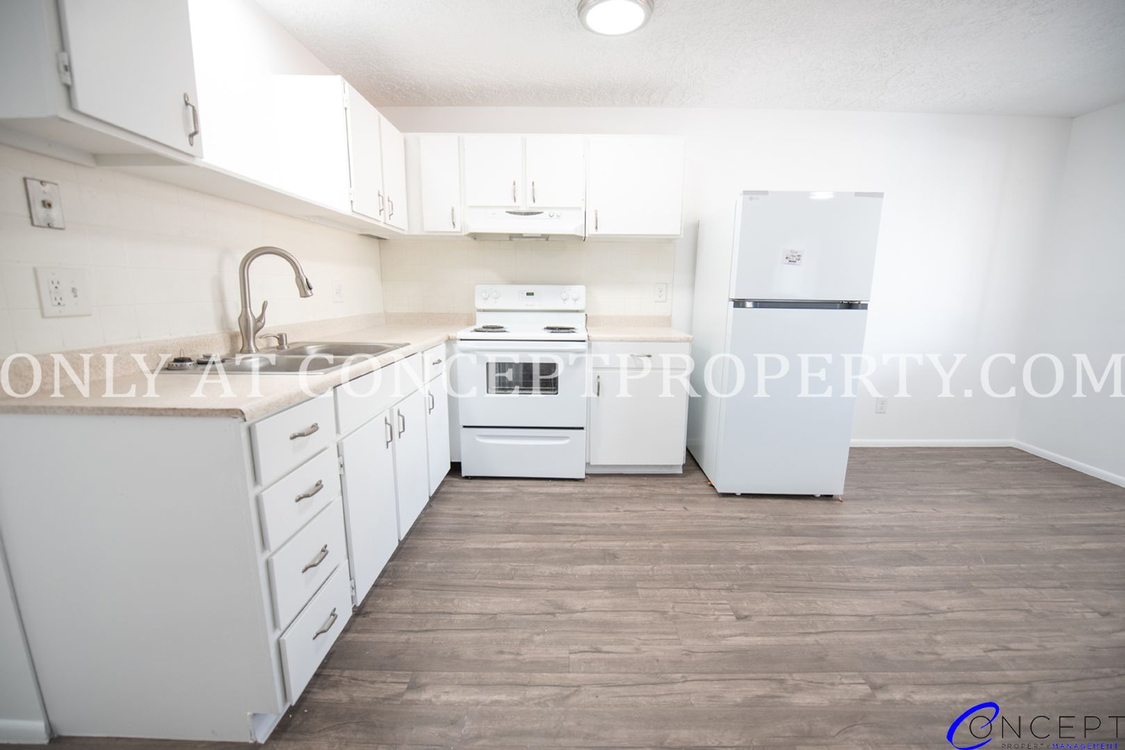 Welcome to your upgraded home, featuring a brand-new washer and dryer, central air, and stylish, low-maintenance luxury vinyl flooring. The open kitchen and dining area offer plenty of space for cooking and entertaining, while oversized windows fill the living room with natural light. Ceiling fans keep the air flowing, and Google Fiber-ready internet keeps you connected with ease.