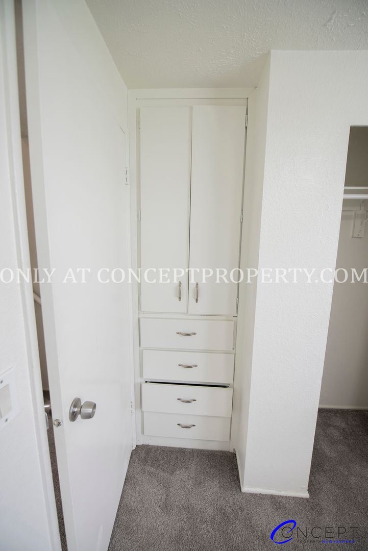 This charming home offers a comfortable and functional living space designed to meet your everyday needs. Featuring washer and dryer hookups, an open kitchen filled with natural light, and a cozy dining area, this residence is perfect for both relaxing and entertaining. The two-story living areas provide a sense of spaciousness, while generous storage under the stairs and built-in shelving and cabinets in the bathrooms and bedrooms offer ample organization solutions.