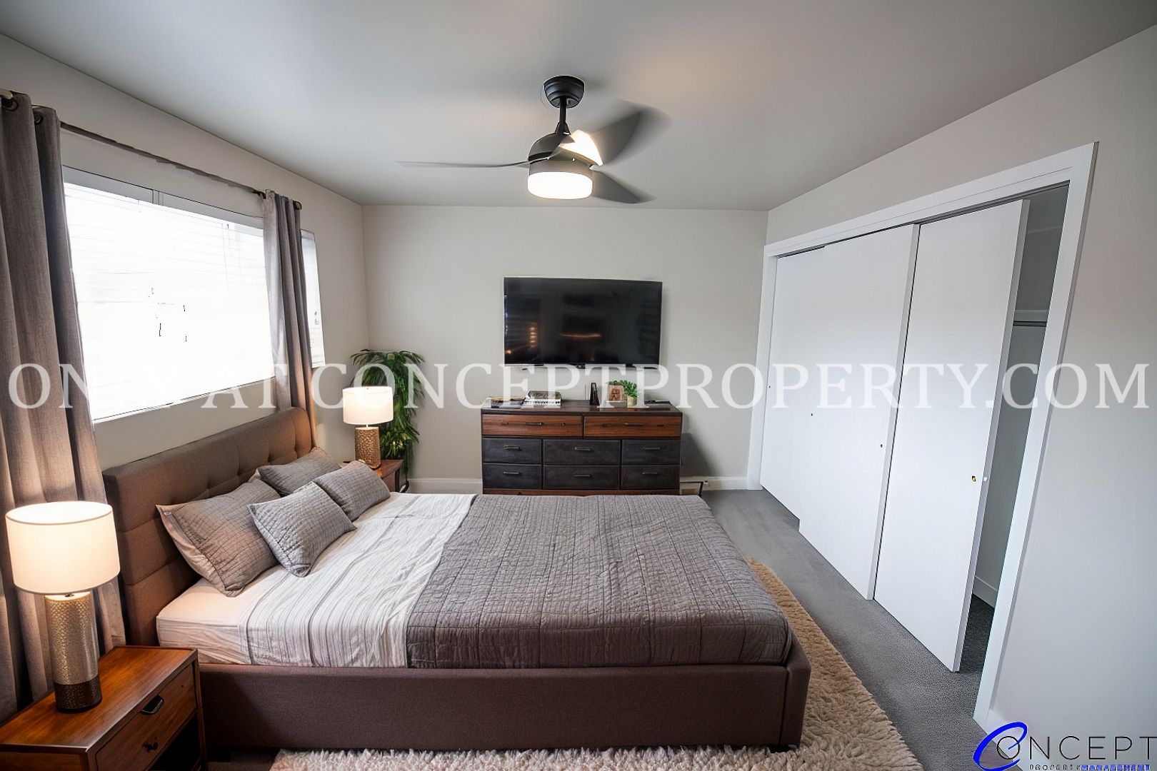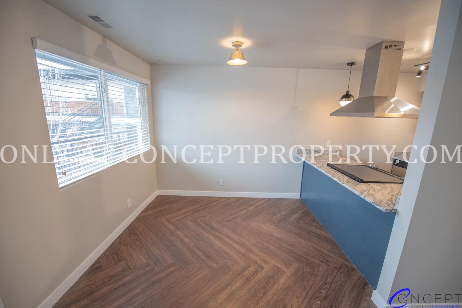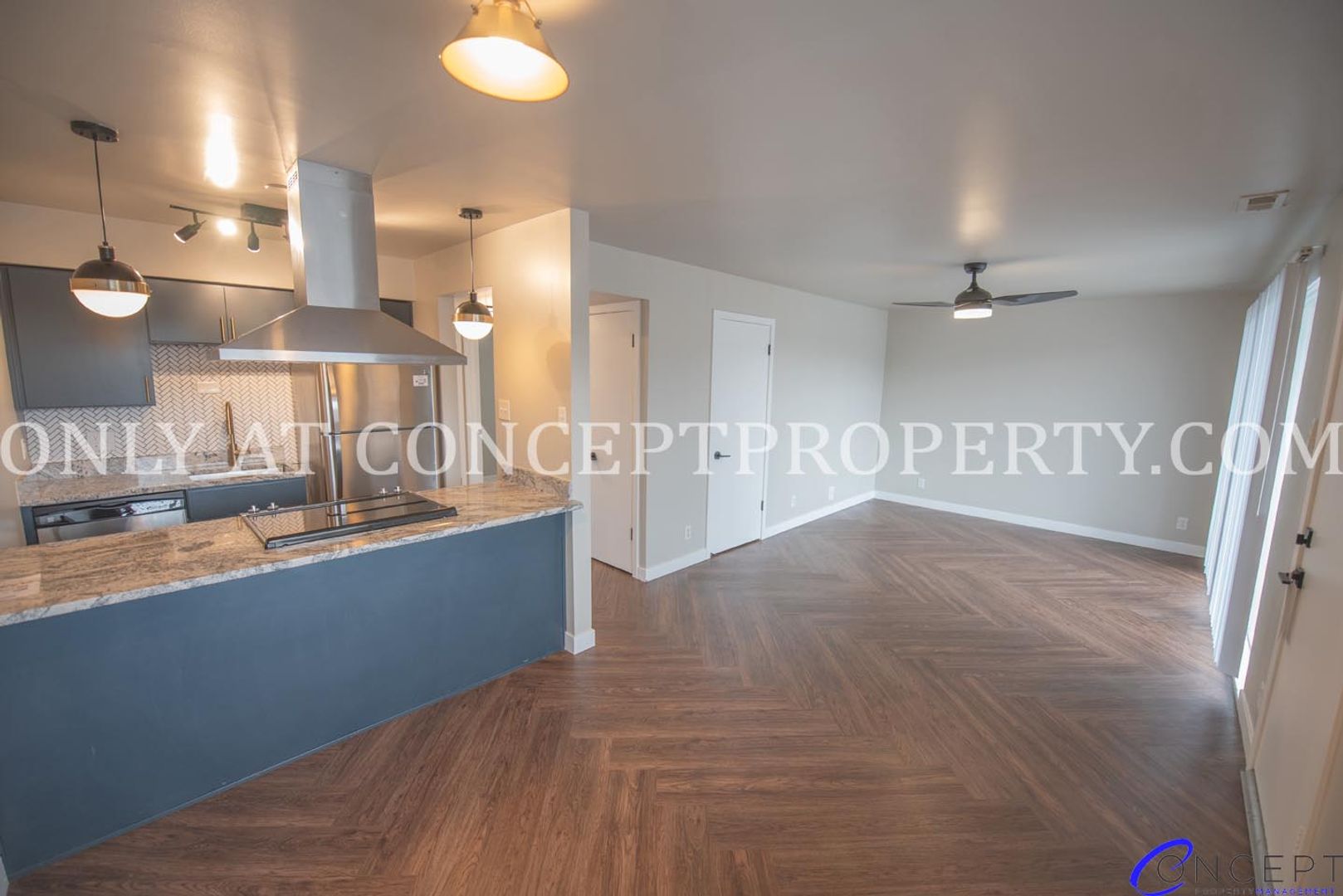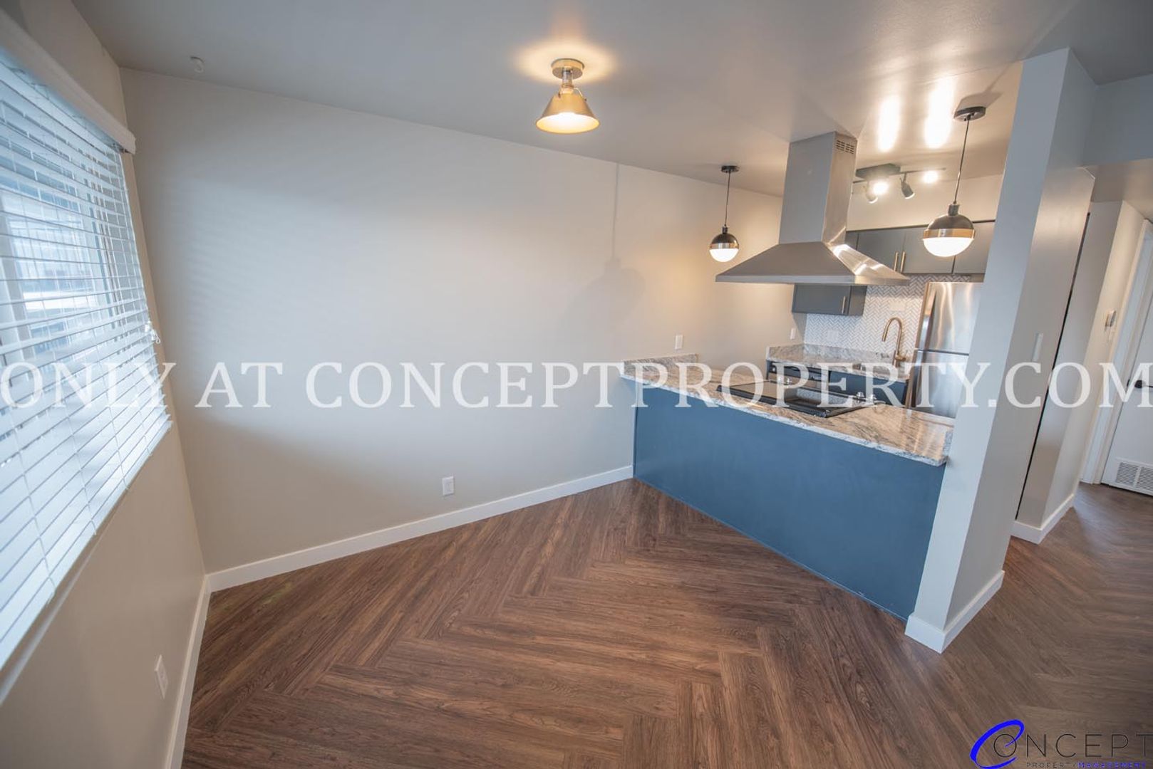 Step into elevated living in this fully remodeled apartment, where thoughtful design and modern finishes come together in perfect harmony. From the rich wood grain flooring to the sleek subway tile backsplash and shower, every detail has been crafted for comfort and style. The open floorplan is flooded with natural lighting, accentuated by pendant and gallery lighting that adds a cozy, curated touch. Your kitchen is a dream, featuring custom cabinetry, granite countertops, stainless steel appliances, and chic brushed brass finishes. With a dedicated dining space, ceiling fans, and a triple door primary closet, this home offers both functionality and flair.