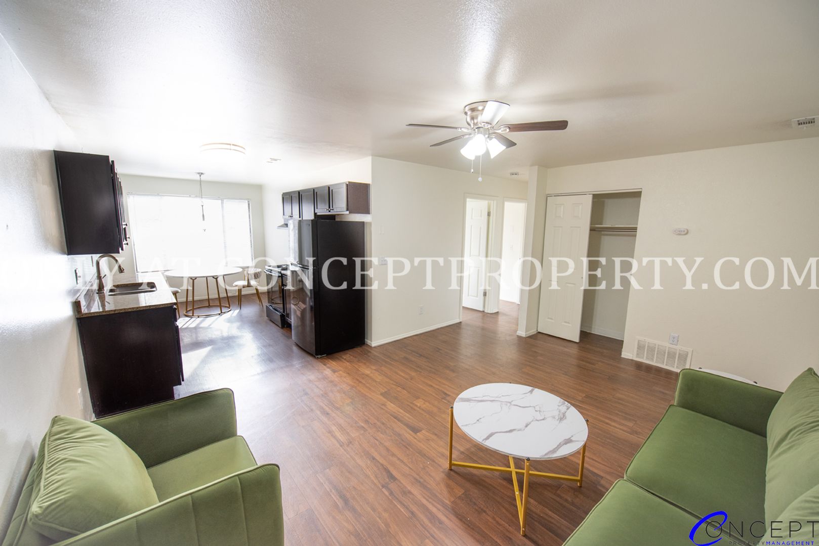 Our apartments offer a thoughtfully designed layout with an open-concept living area, a separate laundry room complete with washer and dryer hookups, and built-in shelving to help keep things organized. Each home is equipped with central air and modern Nest thermostats for comfort and efficiency. Select units feature added touches like a living room ceiling fan, upgraded flooring, and newer appliances. You’ll also find a spacious kitchen with a designated dining area, a dishwasher, and plenty of natural light that creates a warm and inviting atmosphere.