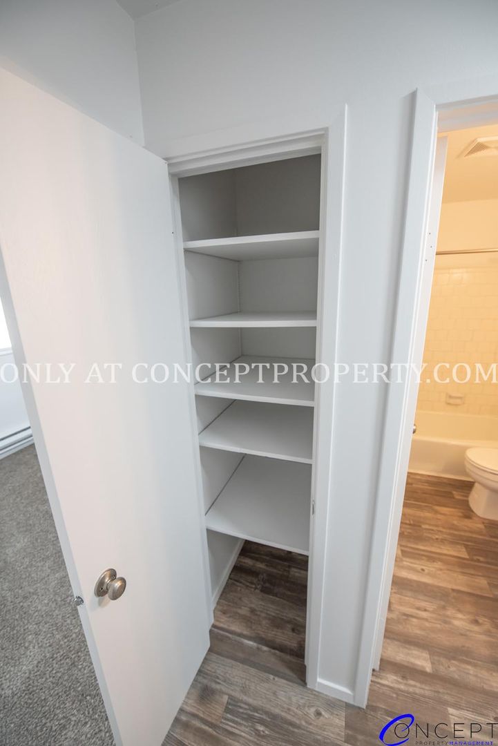 Step into comfort and style with this fully remodeled apartment that combines modern upgrades with everyday convenience. Featuring a stainless steel appliance package, updated vinyl flooring, and an electric fireplace, the open-concept living space feels both warm and contemporary. Enjoy custom cabinetry, architectural can lighting, and large windows that fill the home with natural light. The spacious primary bedroom boasts double-door closets, while the tiled shower, in-unit washer and dryer, and private downstairs entrance add comfort and functionality. You'll also have assigned covered parking and your own personal storage unit for added convenience.