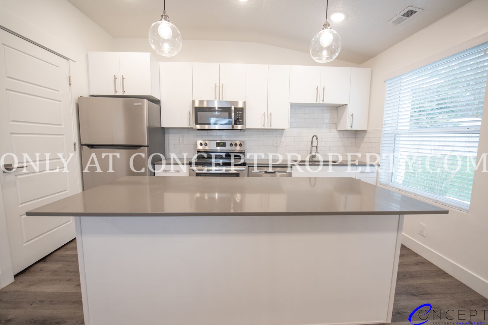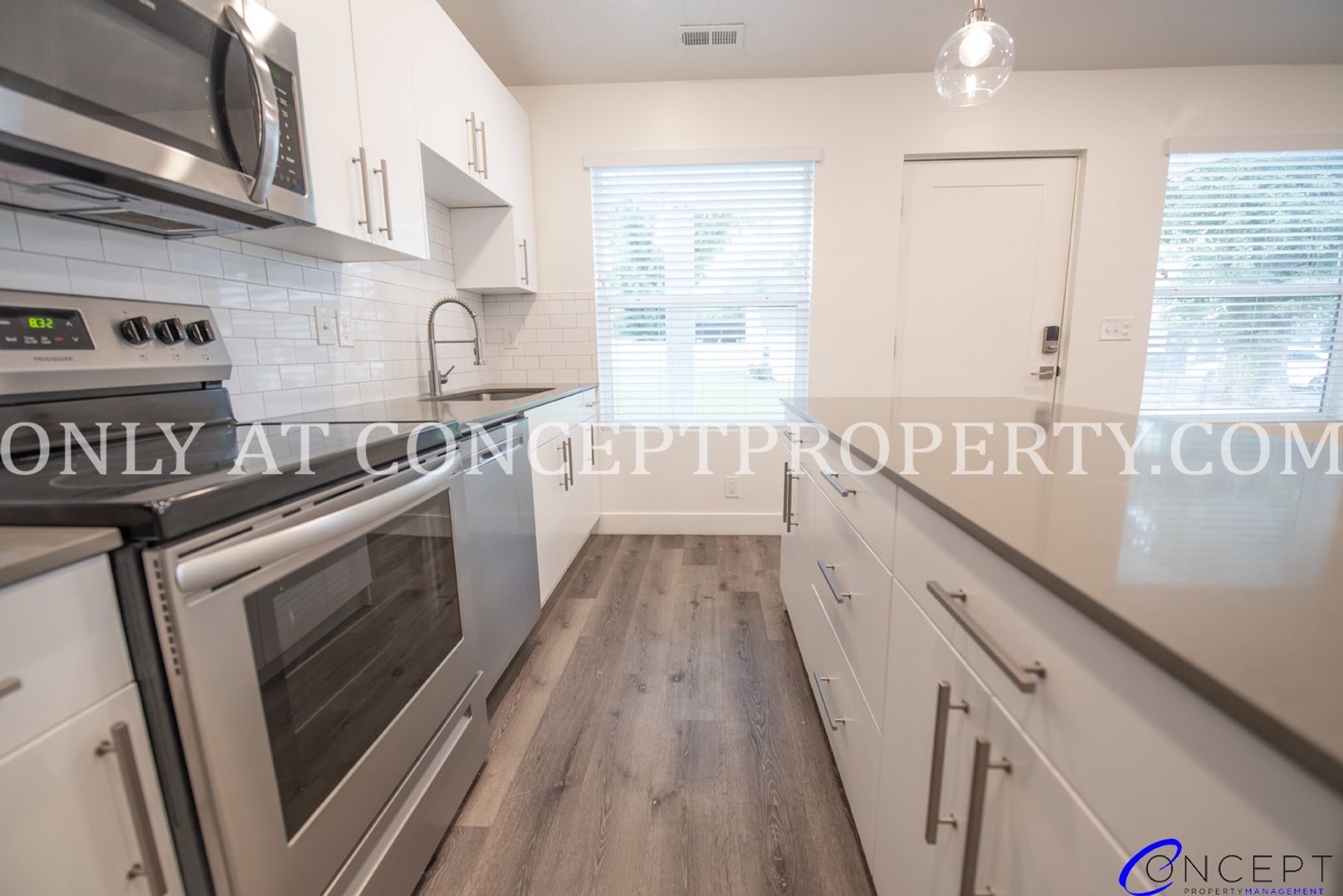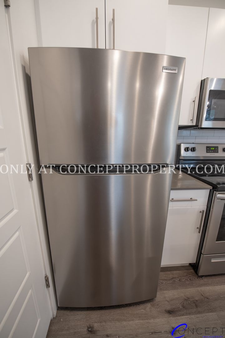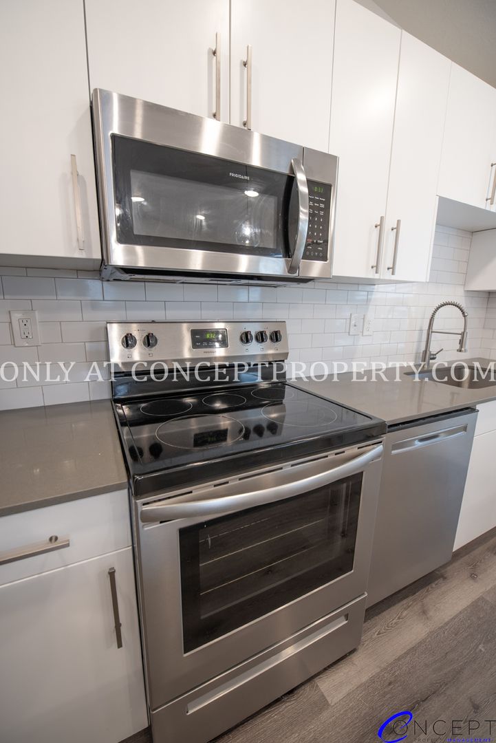 Step into a lifestyle that basically sells itself—this stylish, “totally upgraded” unit features a stainless steel appliance package paired with custom cabinets and sleek granite/quartz countertops that shine under trendy pendant lighting. The spacious kitchen flows effortlessly into a large living room, complete with a decorative fireplace mantle that looks great whether you use it or not. Enjoy breakfast bar seating at the oversized island, surrounded by large windows delivering great natural light (seriously, you’ll never need to turn lights on… probably). High ceilings, vinyl flooring throughout, faux wood blinds, and a smart door lock add that perfect mix of modern convenience and “we thought of everything” energy. Plus, with a private entrance and en suite primary bathroom featuring a subway tile shower and full-size tub, it’s giving luxury… without saying luxury.